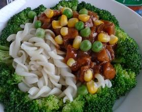 - 11. 将西兰花摆好。倒入螺旋粉。