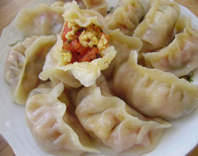 - 1. 用开水将面粉搅拌成棉絮状,和成面团,稍微饧一会儿。