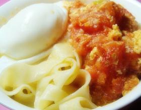 - 14. 面条和荷包蛋盛到碗里,浇上做好的卤子。