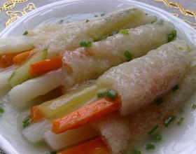 山药,黄瓜,胡萝卜切成比竹荪长一点的条状,方便放入