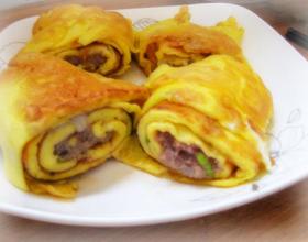 卷成蛋卷后在锅里放蛋液再卷一层。