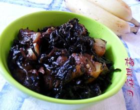 30分钟后倒入梅菜炒匀,再焖烧15分钟即可出锅。