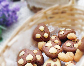 - 6. 把低粉分成120克和100克,100克的低粉中加入20克可可粉,分别加入1/4小勺的泡打粉,分别筛入黄油中。