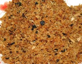 放凉一会儿再煎一次,加入撕碎的海苔,比较酥,水分也比较少。