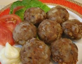 把金枪鱼和洋葱末装在香菇底部,做成丸状,裹上生粉,下油锅煎熟。