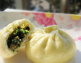 - 16. 包好的菜包醒十分钟左右,蒸笼内放水然后放入菜包大火20分钟左右,香喷喷的菜包子就好了。