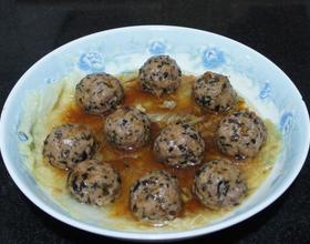 把丸子摆入盘中,上蒸锅蒸15分钟