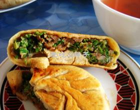 - 13. 摺朝下放入肉饼,再在上面刷一层油,盖盖烙一分钟。