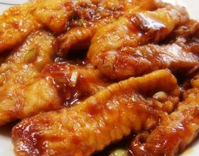 倒入干炸里脊,翻炒一会。临出锅前撒少许鸡精调味即可。