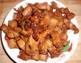 放入少量酱油、葱段、花椒、八角、姜片,翻炒。
