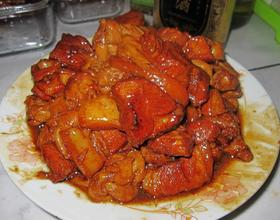 - 11. 等汤汁剩下三分之一的时候把香料捞起来扔掉,尝一下汤汁的味道,上海人喜欢吃甜的,所以我会添加些糖进去翻炒一下,大火收水。