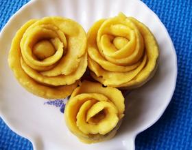 将面皮卷起,用手拧成两段,成为两朵花,断面向下,放在桌上稍作整理。