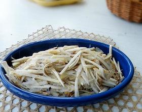 芋头丝炒半熟加入粉丝,放一点水,防止干锅。