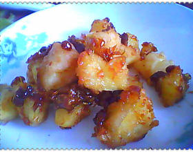 小火,慢慢翻炒白糖,白糖化至糖浆。