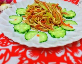 郫县豆瓣酱和味极鲜本身含盐,所以炒面时不用放盐了。喜欢吃酸的童鞋们可以在出锅前淋上适量的醋,就成了开胃的酸辣炒面了。煮面的过程不要太久,煮好的面要迅速的过冷水,这样面才不会发粘。