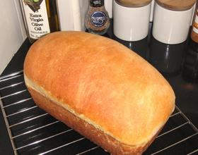 2.我用的吐司模具约21*11cm,面包还是会长的过分的高。所以我不得不放在烤箱下层烤,这样有糊底的风险。如果烤箱够大,一定放中层,并且相对延长烘焙时间,还可以在出炉前改成上部加热来给面包上色。