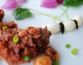 - 3. 排骨斩断洗净放入容器,加所有调味料、莲子抓匀腌制30分钟。