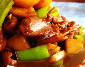 热锅下油,放入鸡胗旺火翻炒一分钟。