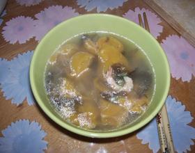 把小锅烧上热水、然后下入几个海米、几片紫菜、葱花、姜末、一小茶勺植物油、盐一勺;