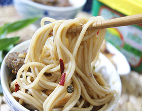 【如何让面条不粘连】1、必须用象一町拉面之一类的面条,耐煮,有嚼头,韧性好,不易断。2、汤锅放水烧开后倒入1茶匙香油和撒入1茶匙盐,可防粘连。3、要准备足够的凉水和冰凉水,面条一定要先过凉水,浸泡入冰凉水5分钟就不易粘连。4、也可以再备一碗冰凉水放在旁边,再把拉面放入透凉后再拌酱会更好吃。
