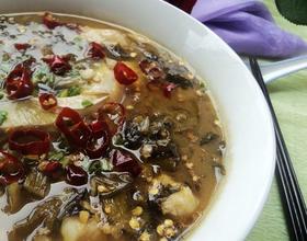 下入鱼,大火烧两分钟,鱼肉八分熟即可,不然在烫的汤里时间一长,肉就老了。