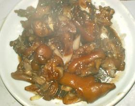 转中火焖烂收汁,下入大葱再闷片刻,调入味精。