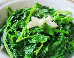 - 4. 倒入木耳菜,翻炒一下,立即放入盐和鸡精。