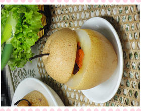 把梨放到盘中,锅中加入适量的开水,蒸制半小时即可。