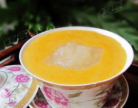 把南瓜汁盛入碗中加入两勺银耳羹即可食用。