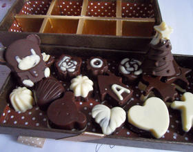 可以自己按着模具弄出各种形状~巧克力之间不会互溶,所以可以有分层的效果一层一层的倒入巧克力多摔几次。。。不然到时出来边缘会有气孔!PS:乐购的自由品牌巧克力还是很给力的,貌似是3.9RMB100g*还挺好吃。。。