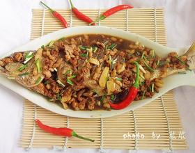 - 8. 猪肉丝变色之后把煎好的鱼放入。