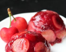 樱桃洗净去核切片薄片,加入樱桃果酱拌匀