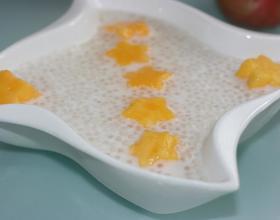 - 7. 將煮好的西谷米到入鍋中加入500毫升的牛奶跟500毫升的椰奶.根糖水