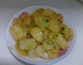在翻炒的过程中放入盐,五香粉,酱油,葱花,鸡精。