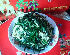 翻炒均匀,放盐、味精调味。炒至韭菜“塌秧”。