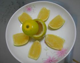 柳橙用盐把表皮洗干净,吉利丁泡水