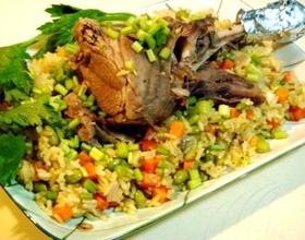 1、此属于小款手抓饭的做法,使用羊腿、羊排均可,但一定要使用嫩的非常新鲜的羊肉来制作。2、煮羊肉时,不宜使用太浓烈的香料,要突出羊肉的原汁原味,把羊肉要焖至酥烂而不离骨才好,因此一定要用微火慢炖。3、在吃的时候,可配以生菜叶来包米饭吃。4、羊汤里面,可放入胡萝卜块、土豆块、洋葱块煮熟,配以手抓饭来吃。制作方法为,用少许黄油把洋葱炒香,放入羊汤,下入胡萝卜、土豆煮烂即可。