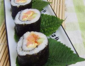 - 1. 材料:熟米饭、海苔、寿司醋、韩式泡菜、白芝麻、黄瓜、火腿肠、蛋皮、紫苏叶