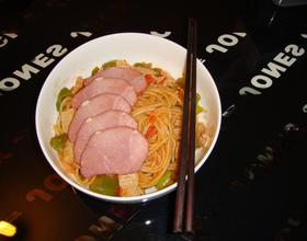 - 12. 盛入碗中,把切片的培根肉摆在上面(可以加自己喜欢的任意食材)