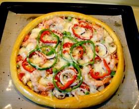 2、这款比萨所制作用的面团儿,一定要有一定的柔软度,筋力要揉的较充分为好,用高筋面粉最适宜,水的用量也要合适,一般揉面在10分钟左右,基本就能达到预期的效果。如果喜欢吃又嫌太麻烦,一次还可多做些面团儿分割成合适的数量,进行冷藏保存随做随用即可,想吃的时侯拿出来稍缓就可使用。