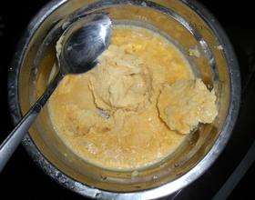 三、四个鸡蛋,蛋黄和蛋白分开,只用蛋黄,蛋白留着晚上做了蕃茄蛋汤。蛋黄中加入白糖,因为我是用旺仔牛奶,所以只放了两勺糖,用纯牛奶要多放些糖,再加入少许玉米淀粉。