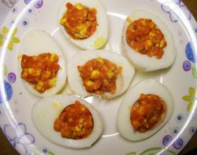 鸡蛋去皮,每个切成两半。