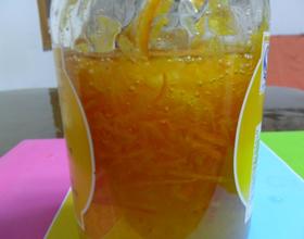 把橙皮切成细丝,用盐水清洗几遍。