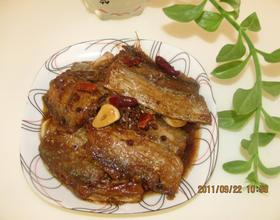 煎到两面金黄,放大蒜.花椒.干辣椒.老抽。