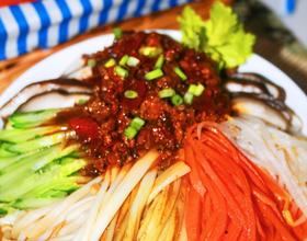 如果喜欢吃爽滑口感的,待面条煮好了,开冷水,冲掉面糊,这样面就爽滑了,加上芝麻油搅拌。