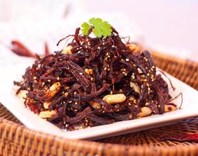 小贴士 1,煮熟的牛肉尽量撕成比较细的丝,喜欢磨牙的可以稍微粗一点,但是太粗的话吃起来很累2,要耐心地把材料中的水分都完全煸干,冷却后的花生才会保持酥脆3,用底面积比较大的炒锅,能尽快炒干水分4,炒好后平摊在盘子里晾凉,再放入保鲜袋入冰箱保存5,最好5天内吃完