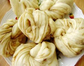 将酵母,白糖,精盐放入面粉中,用温水慢慢搅拌成棉絮状。