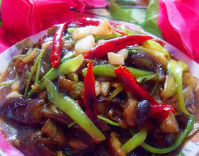 - 6. 锅中加入比平时多一些的油,下入茄子煎。
