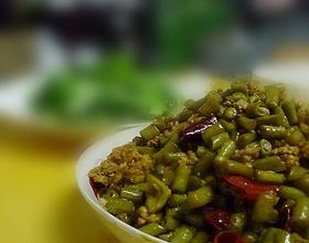 下入酸豆角翻炒,然后加入一小碗水闷一会儿。