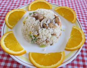 - 7. 续放下杂豆,磨菇片略炒装盘盛出。